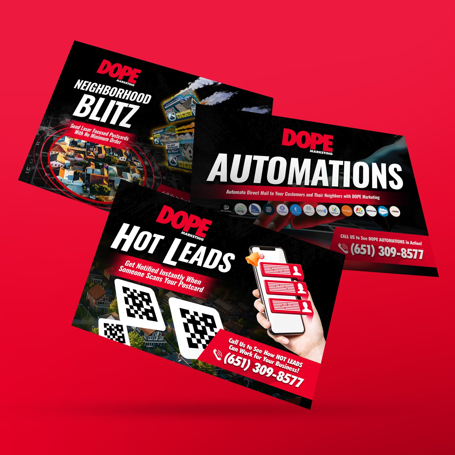 Grow your business in the right neighborhoods using DOPE. Send postcards, handwritten notes and gift boxes with no minimum order. Target homeowners or businesses using our Map BLITZ Tool or connect your CRM to send mail without lifting a finger!